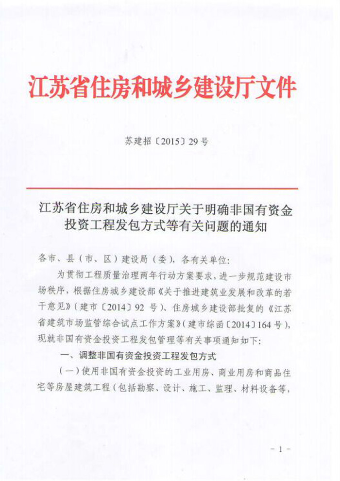 江蘇省住房和城鄉(xiāng)建設廳關于明確非國有資金投資工程發(fā)包方式等有關問題的通知